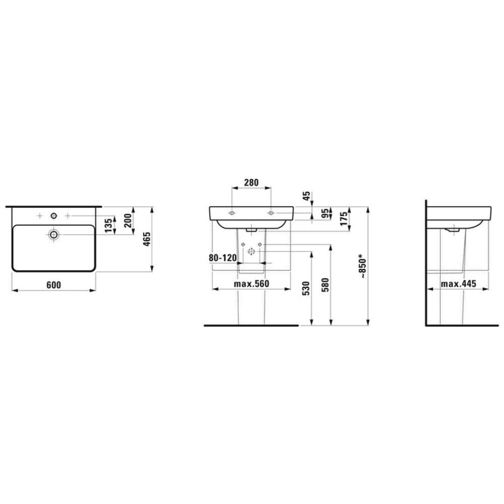 Umyvadlo s jedním otvorem pro baterii, bez přepadu