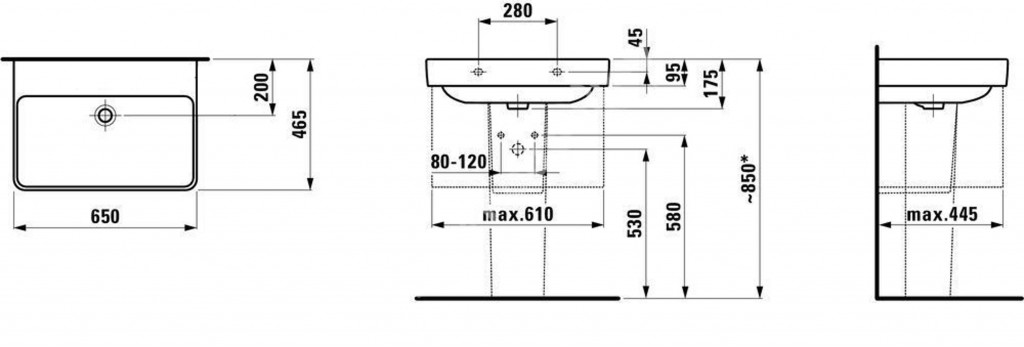 Umyvadlo bez otvoru pro baterii, bez přepadu