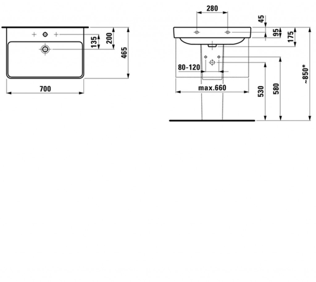 Umyvadlo s jedním otvorem pro baterii, s přepadem