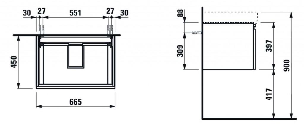 - doporučujeme použít prostorově úsporný sifon, není součástí dodávky