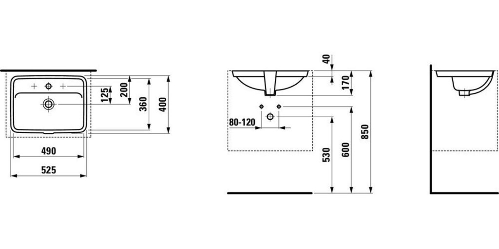 Umyvadlo s jedním otvorem pro baterii, s přepadem.