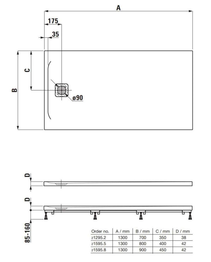 - odpad umístěný na delší straně, Ø 90 mm