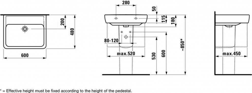 Umyvadlo bez otvoru pro baterii, s přepadem