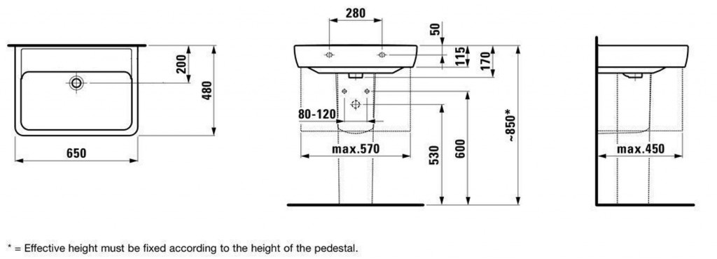 Umyvadlo bez otvoru pro baterii, s přepadem