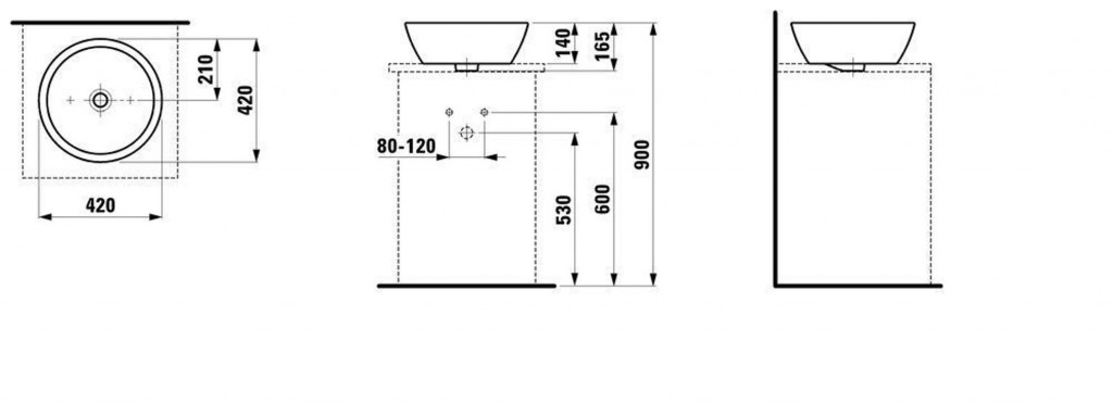 Umyvadlová mísa bez otvoru pro baterii, s přepadem.