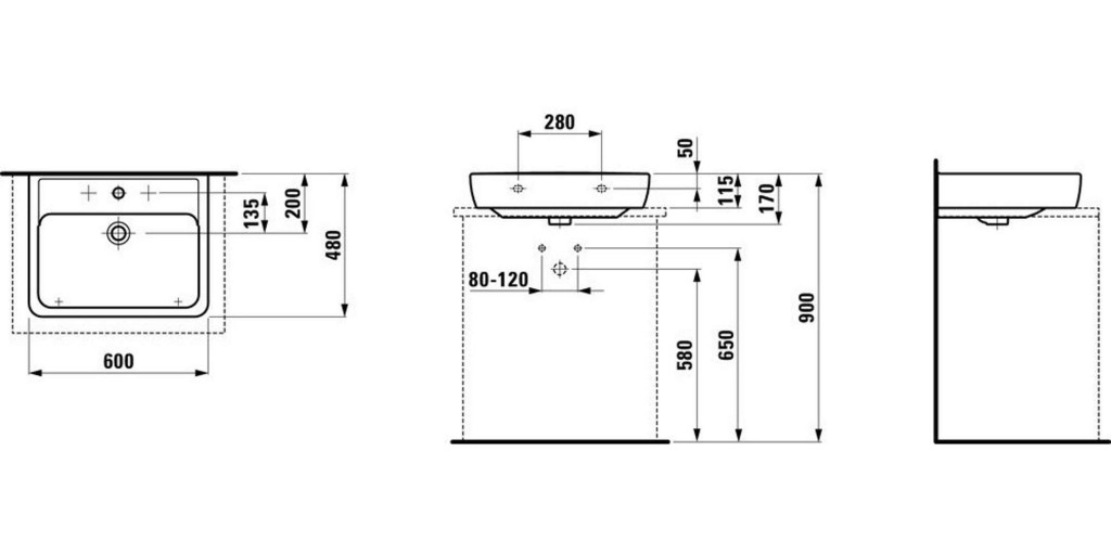 Spodní část broušená, vhodné pro instalaci na desku.