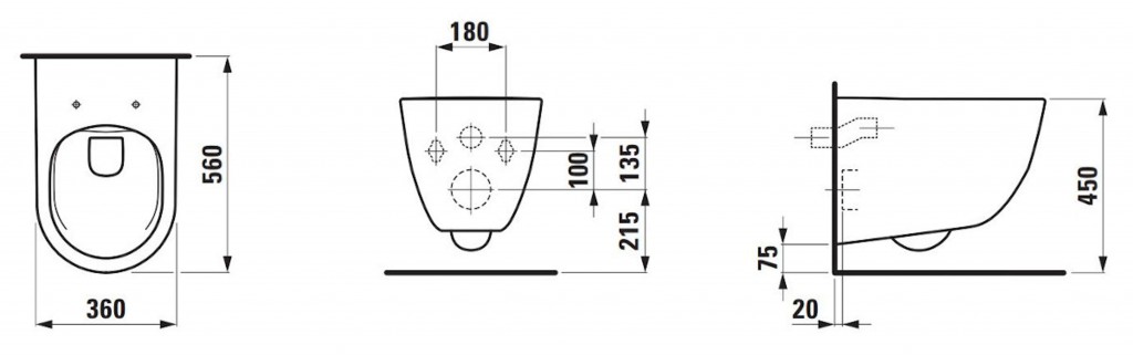 - instalace: zavěšením na zeď, pro výšku 450 mm