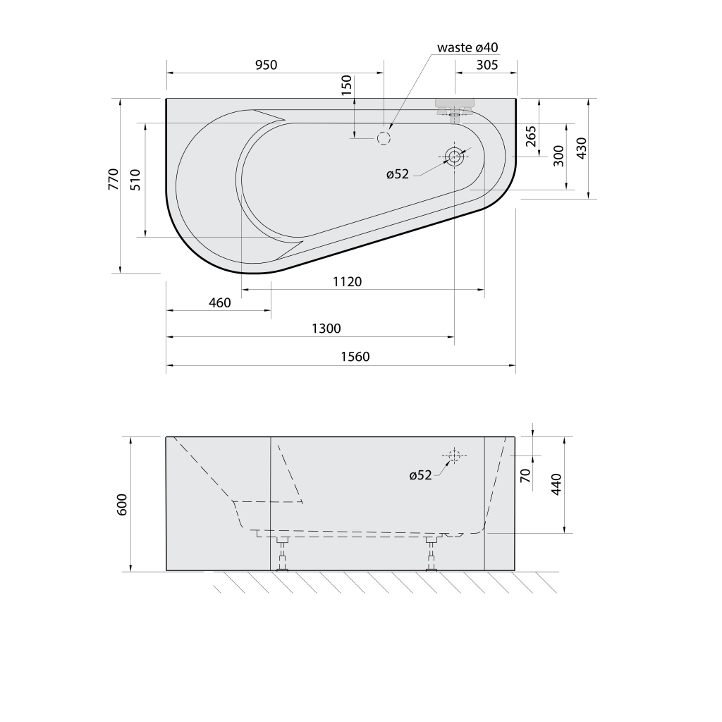 POLYSAN - PROJEKTA DL MONOLITH nástěnná stojící vana 156x77x60cm, bílá (20111MDL)