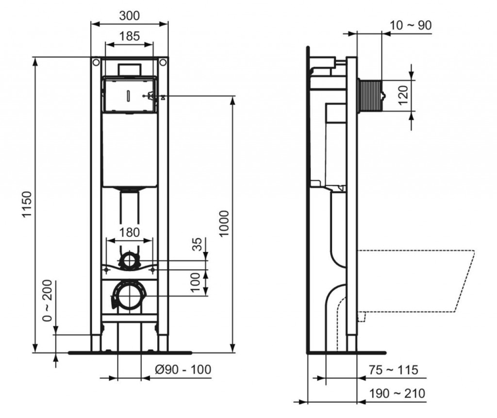 Předstěnový instalační modul Eco Frame M pro závěsné toalety