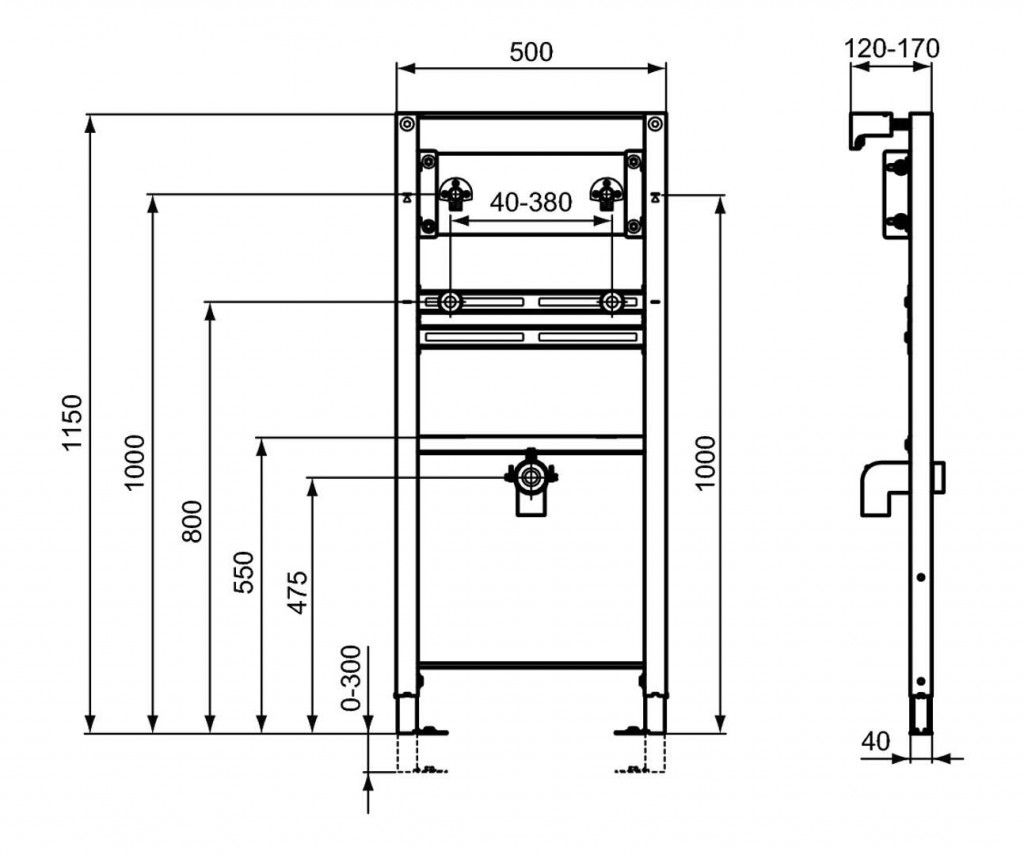 - samonosný rám z ocelových profilů s výškově nastavitelnými patkami (0-300 mm)