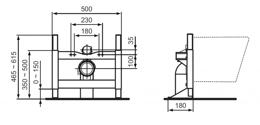 - pro závěsné toalety s montážní roztečí 180 nebo 230 mm