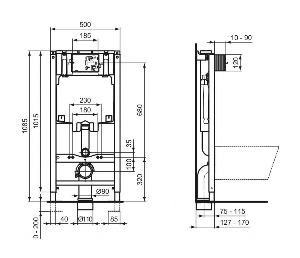 - instalace před pevnou stěnu nebo do lehké příčky ze sádrokartonu