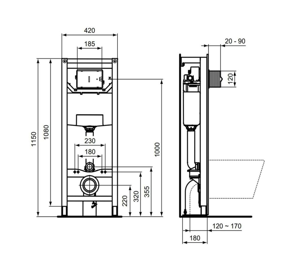 - pro závěsné toalety s montážní roztečí 180 nebo 230 mm