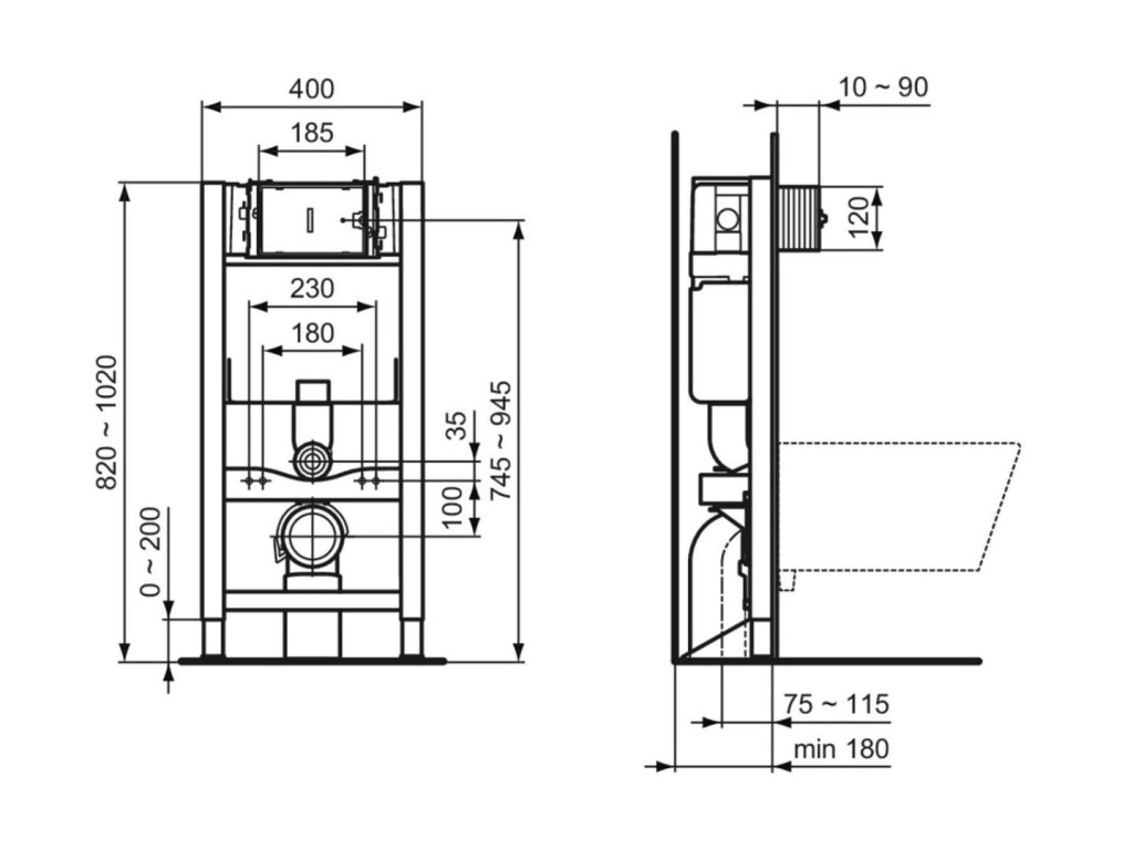 - pro závěsné toalety s montážní roztečí 180 nebo 230 mm