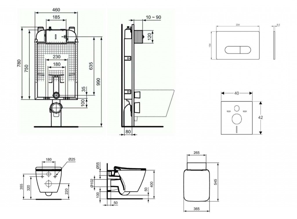- podomítková nádržka z polypropylenu (PP), který je velmi odolný k tepelnému namáhání, ochrana proti kondenzaci