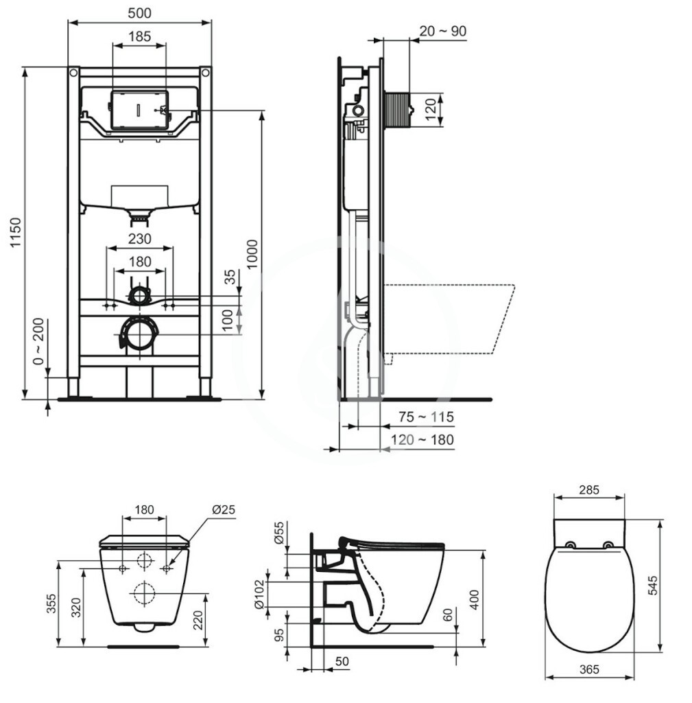 - předstěnový montážní prvek Ideal Standard ProSys 120M 3H pro závěsné WC
