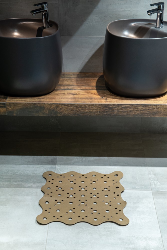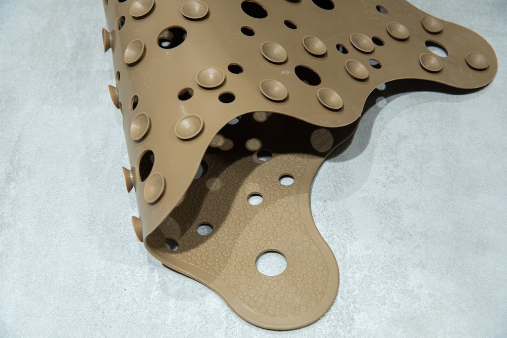 Protiskluzová koupelnová předložka v hnědé barvě. Čtvercový tvar bude ideální pro sprchovou vaničku. Na spodní straně sprchové rohože se používají speciální přísavky, které ji připevňují k zemi. Koupelnová předložka se velmi snadno čistí. Čistit na 30 stupňů, nežehlit, chemicky nečistit, nebělit, nesušit v sušičce.