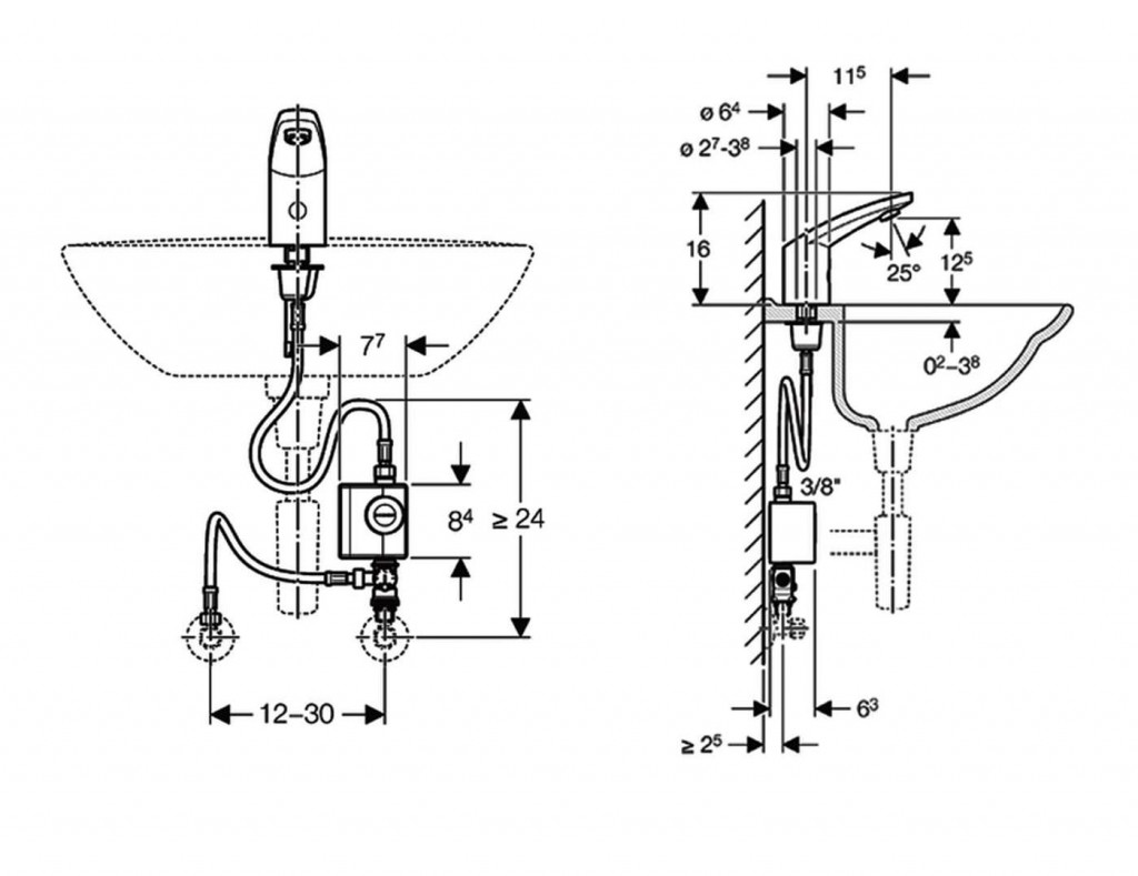 Infračervená elektronická umyvadlová baterie typ 185 s generátorem a směšovačem