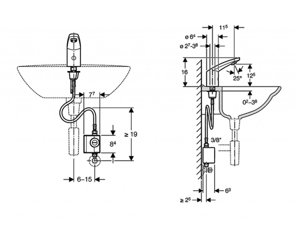 Infračervená elektronická umyvadlová baterie typ 185 bez směšovače, s generátorem