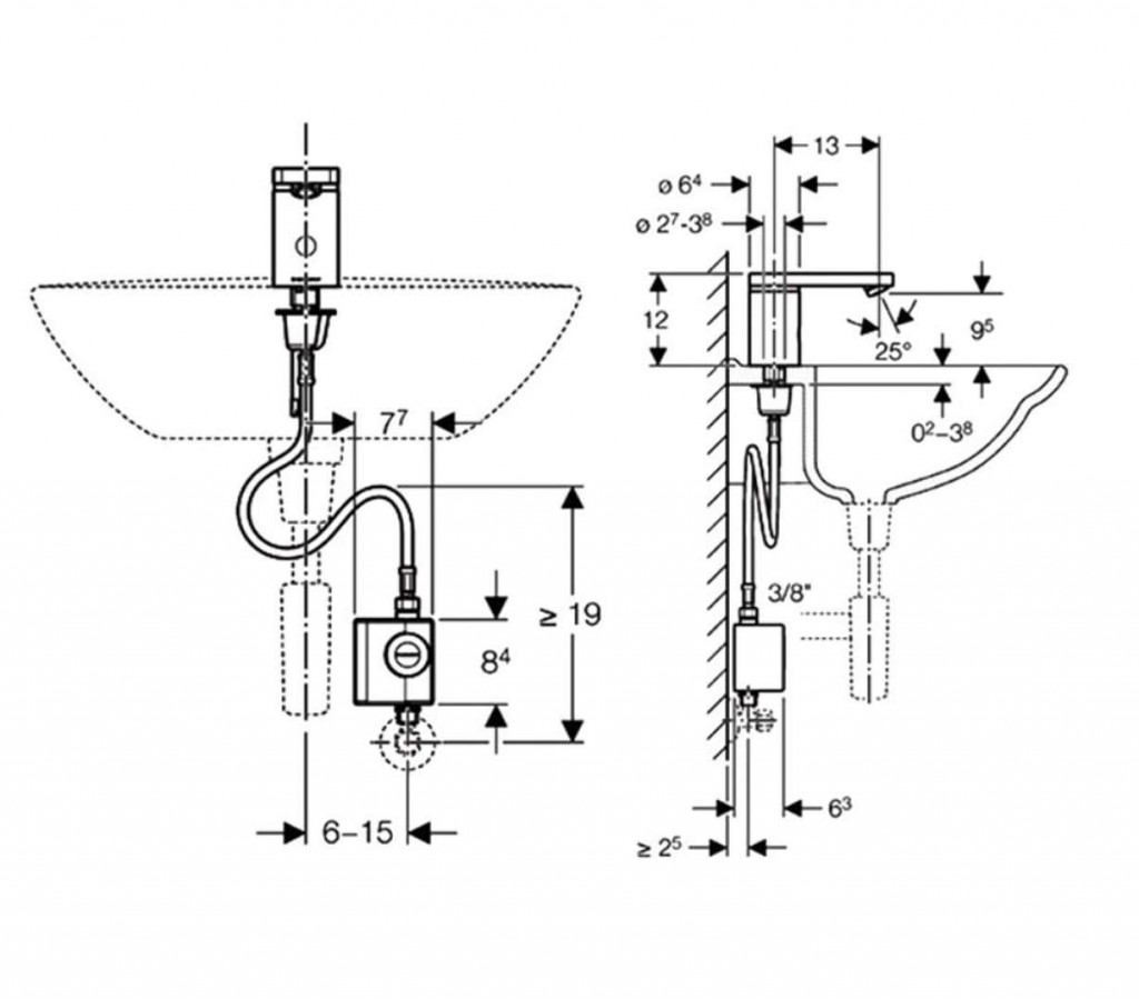 Infračervená elektronická umyvadlová baterie typ 186 bez směšovače, s generátorem