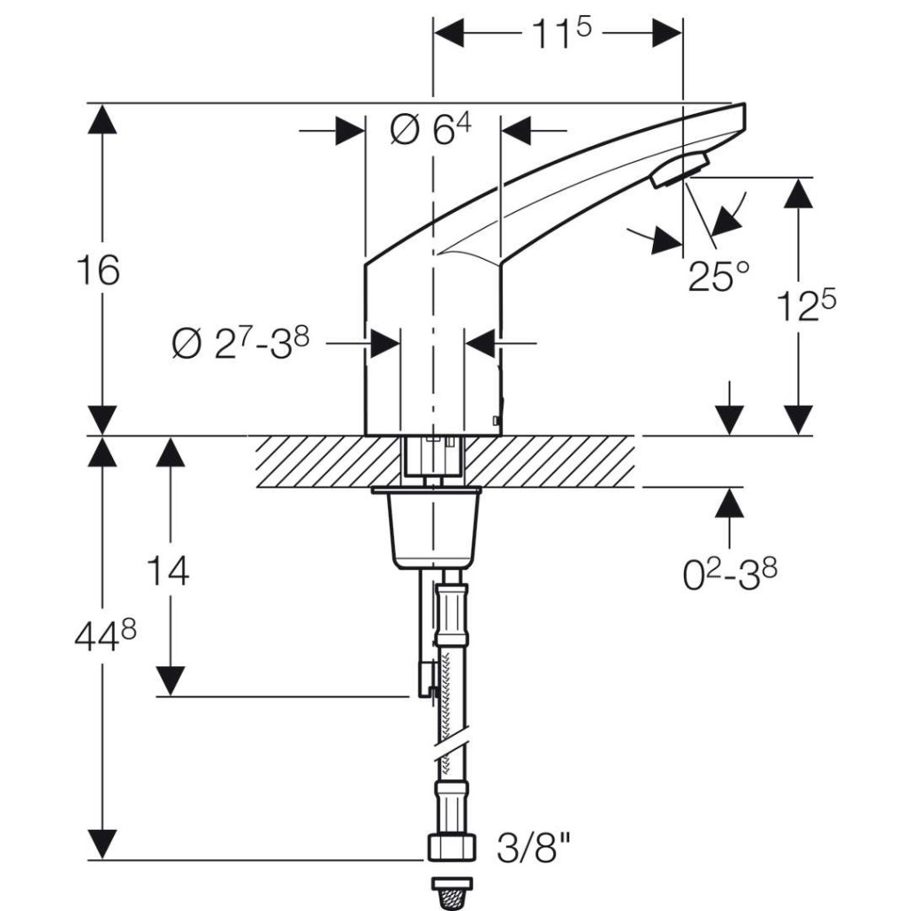 Elektronická umyvadlová baterie typ 185, napájení ze sítě, bez síťového zdroje, bez směšovače