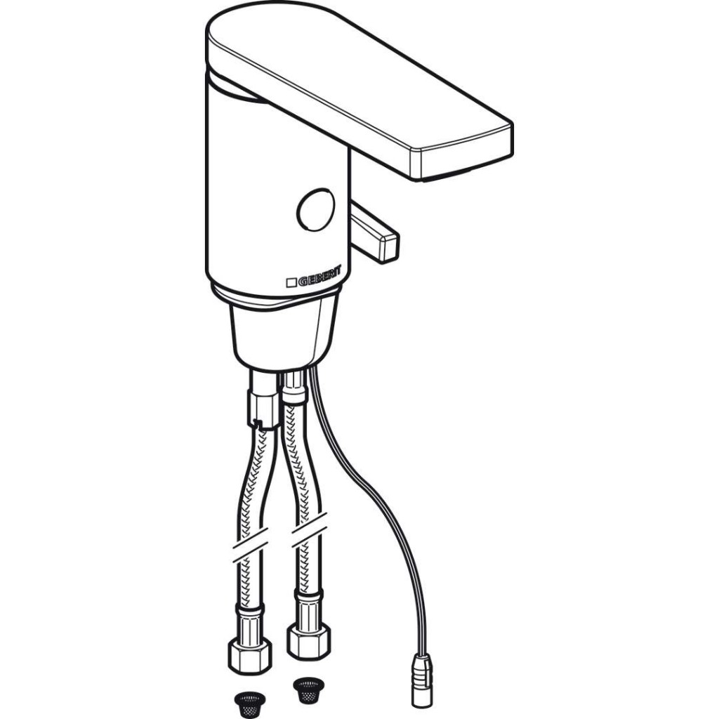 Elektronická umyvadlová baterie typ 185, napájení ze sítě, bez síťového zdroje, se směšovačem a rukojetí
