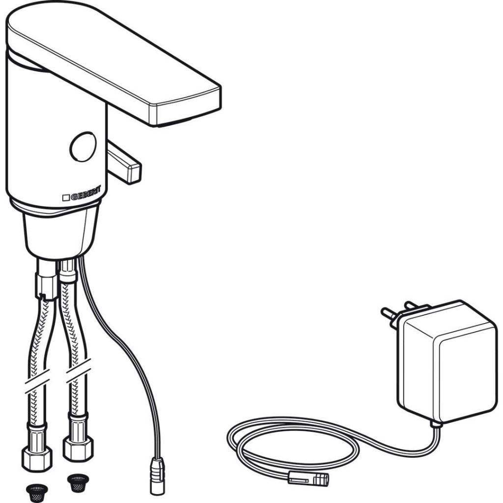 Elektronická umyvadlová baterie typ 186, napájení ze sítě, se směšovačem a rukojetí