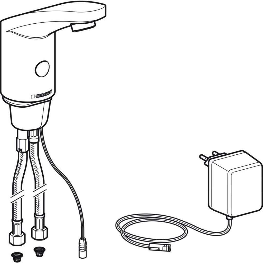 Elektronická umyvadlová baterie typ 185, napájení ze sítě, se směšovačem