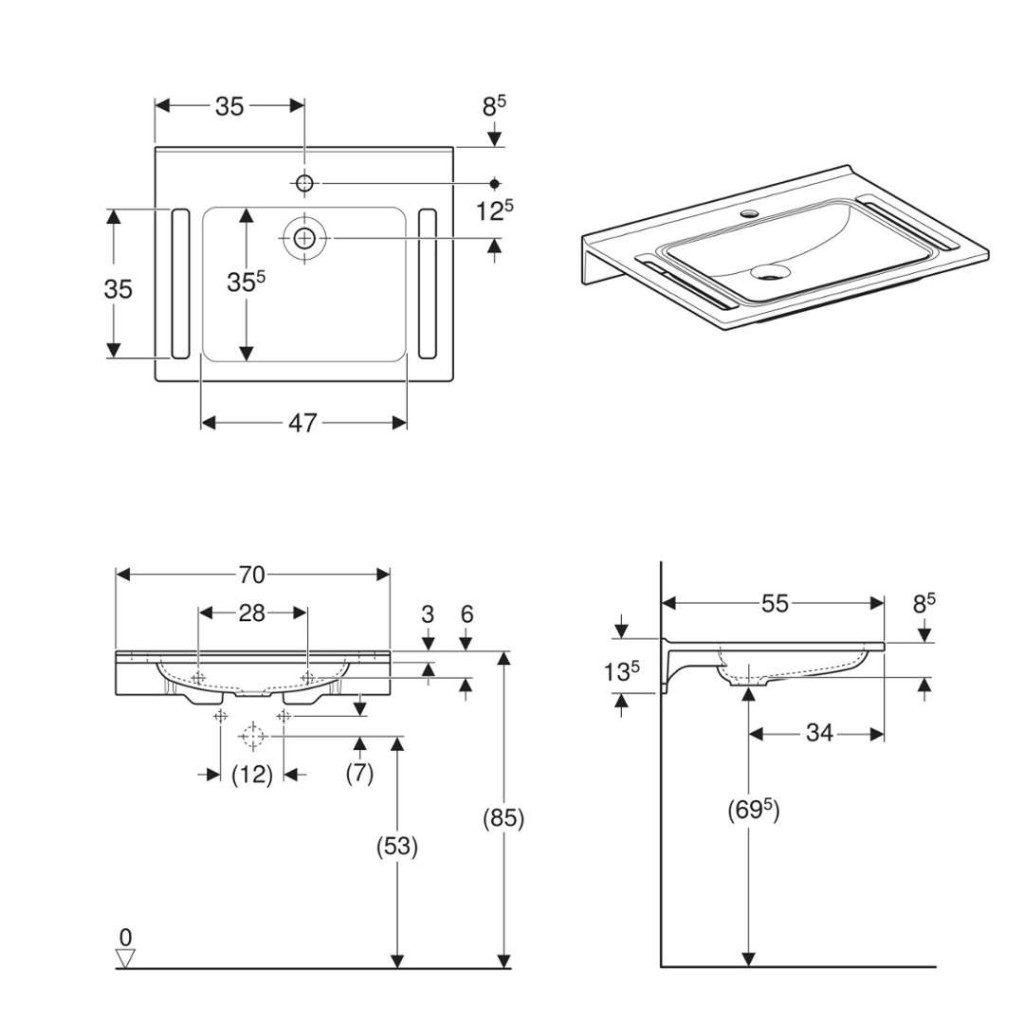 Umyvadlo Geberit Publica, hranatý design, s výřezy