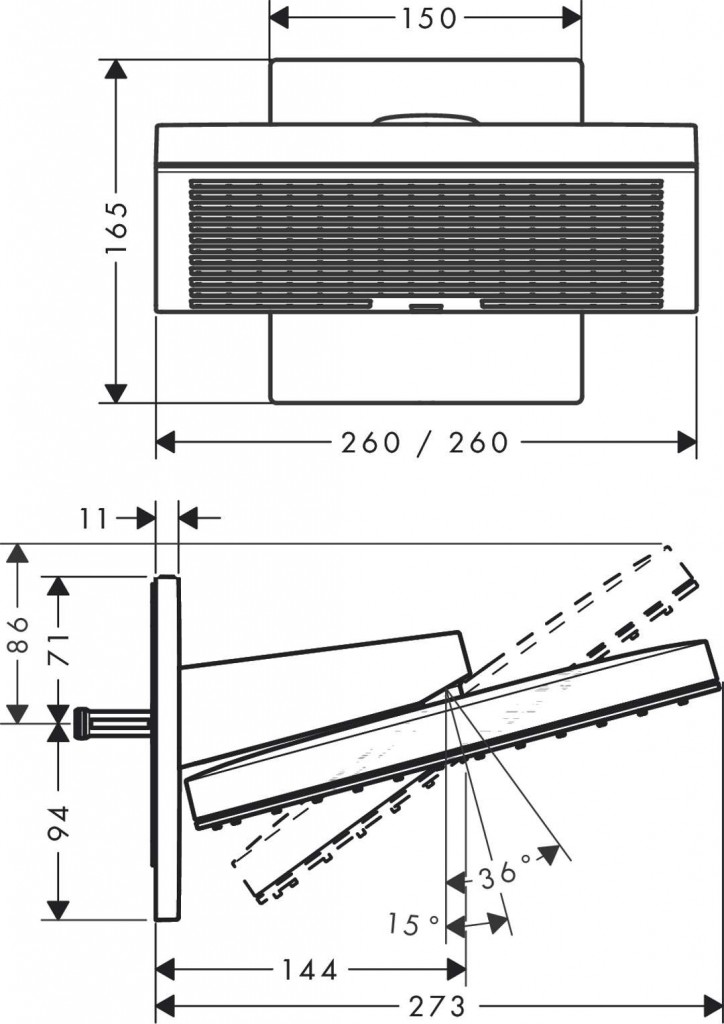 Horní sprcha Pulsify E 260, s nástěnným připojením