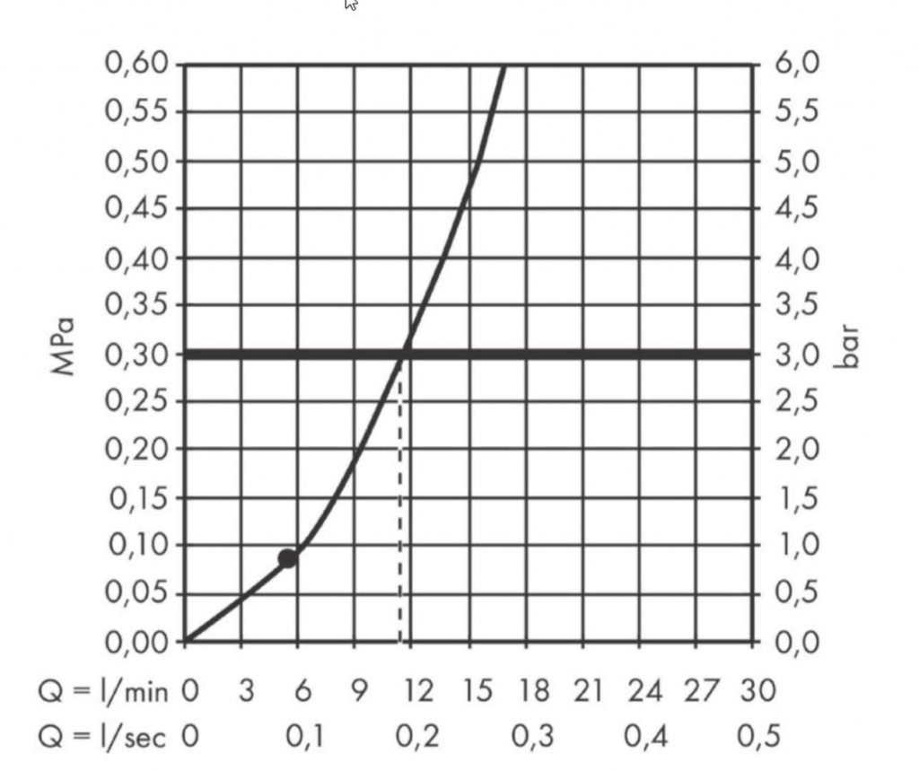 - maximální průtok při 0,3 MPa: 11,7 l / min