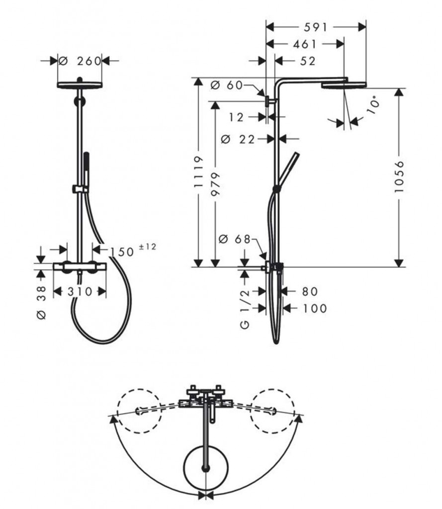 - maximální průtokové množství pro Showerpipe při tlaku 3 bary: 11,2 l/min