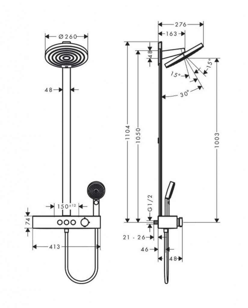 - kulový kloub: horní sprcha nastavitelná v úhlu 10-30°