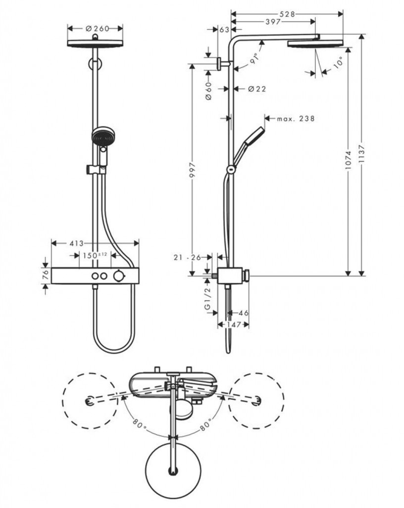 - termostat je dodáván s tlačítky ruční a horní sprcha