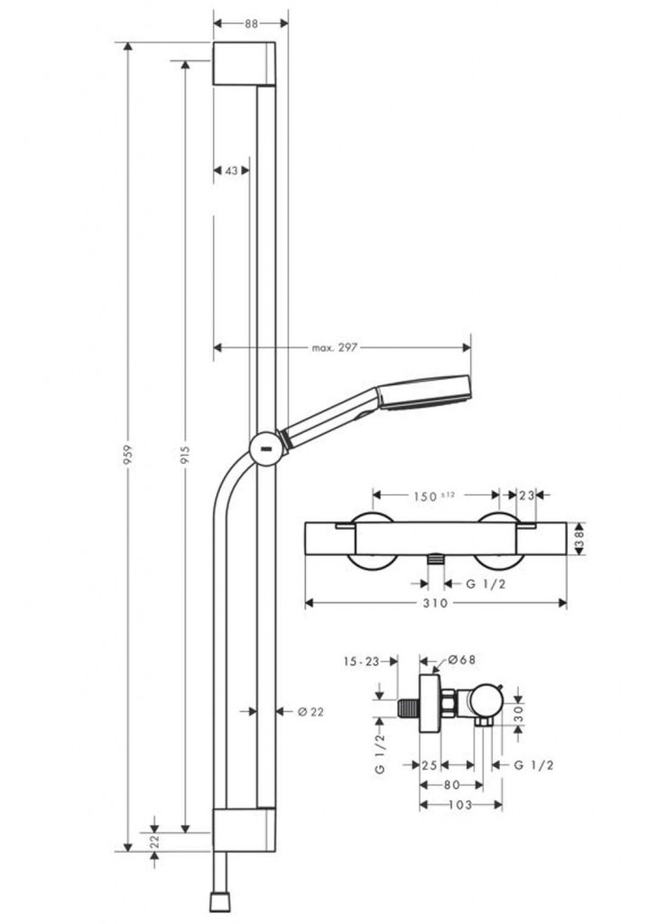 - otočný a výškově nastavitelný jezdec k uchycení ruční sprchy