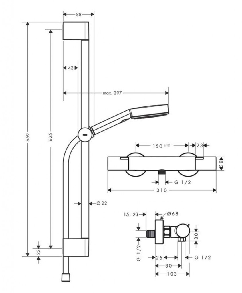 - otočný a výškově nastavitelný jezdec k uchycení ruční sprchy