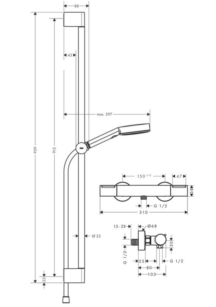 - otočný a výškově nastavitelný jezdec k uchycení ruční sprchy