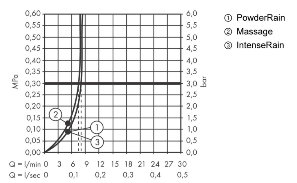 - sprchový proud: PowderRain, IntenseRain, masážní proud