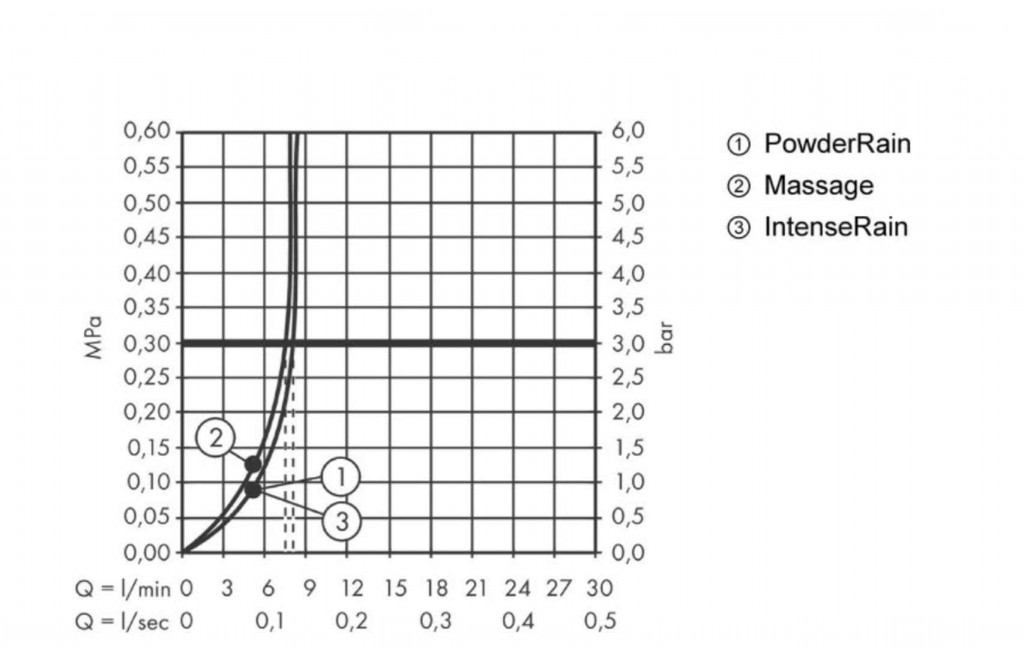 - sprchový proud: PowderRain, IntenseRain, masážní proud