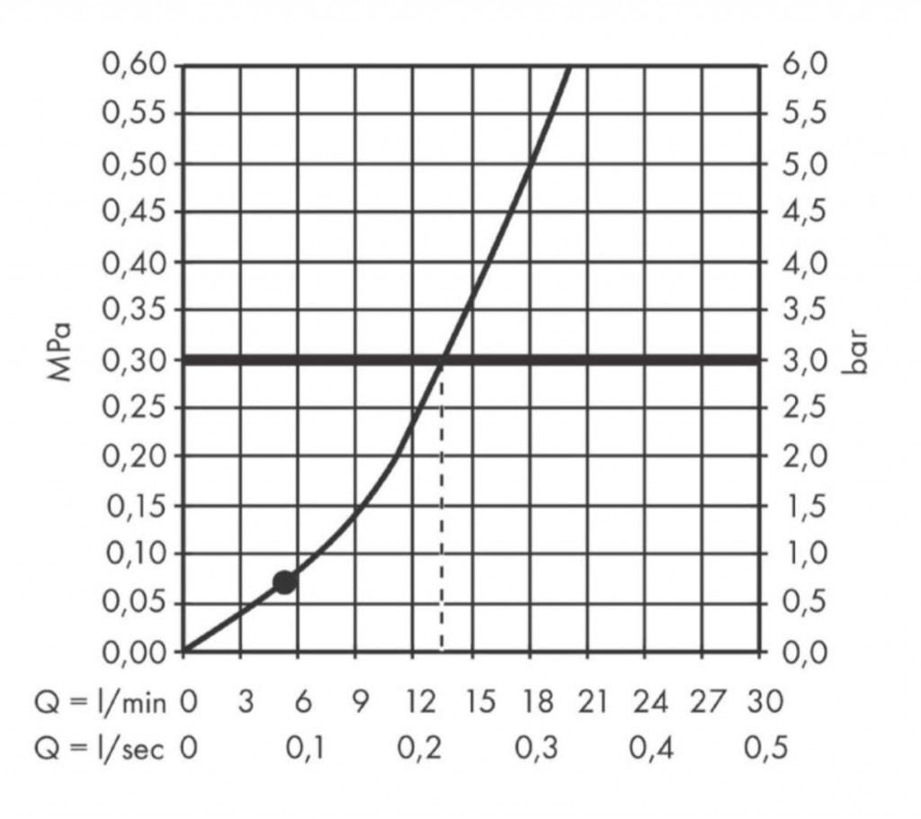 - min. průtokový tlak: 0,1 MPa