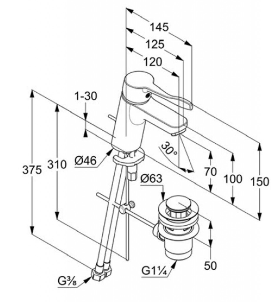 Umyvadlová stojánková páková baterie s odtokovou soupravou