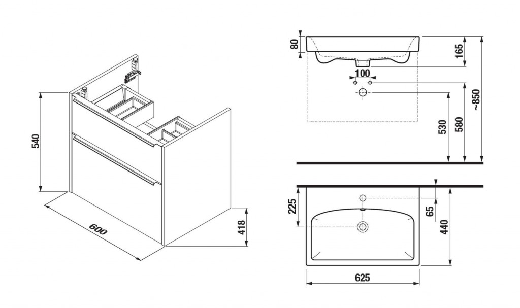 - rozměry bez umyvadla: 600 x 540 x 418 mm