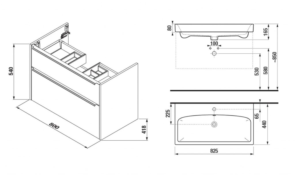 - rozměry bez umyvadla: 800 x 540 x 418 mm
