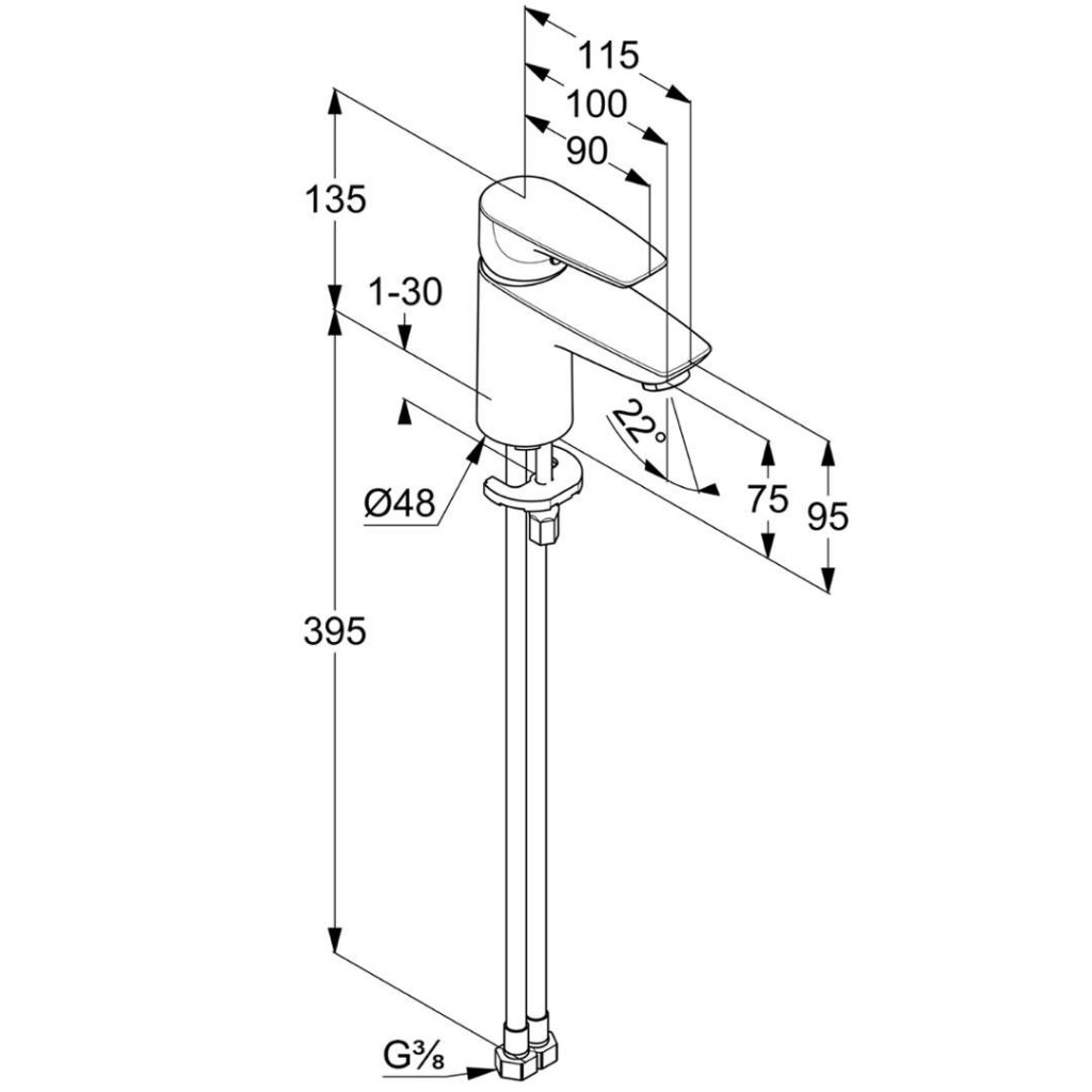 - flexibilní přípojky G 3/8