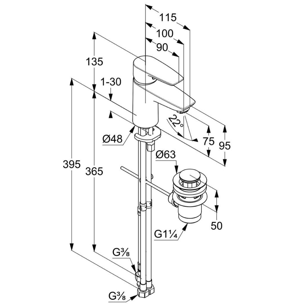 Umyvadlová páková baterie pro beztlakový průtokový ohřívač vody