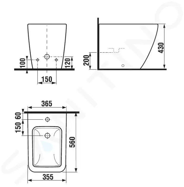 Bidet stojící bez postranních otvorů pro přívod vody
