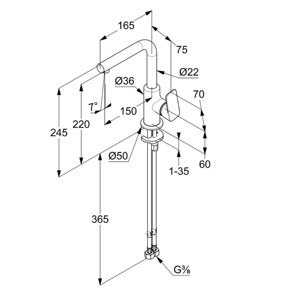 - flexibilní přípojky G 3/8