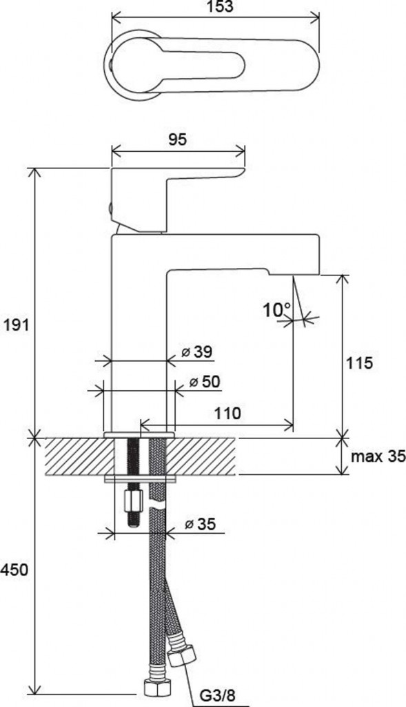 - připojovací hadičky: flexibilní 400 mm, průměr G3/8