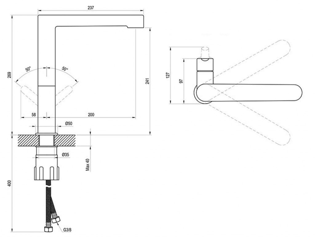 - flexibilní připojovací hadičky 400 mm, průměr G3/8