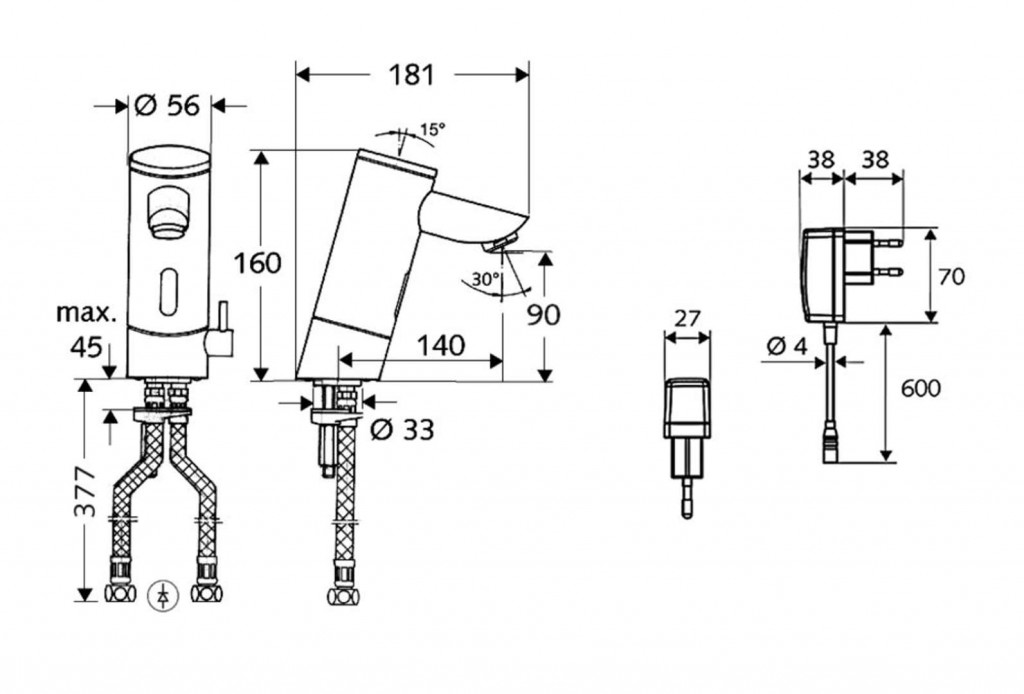 - přerušení funkce při čištění umyvadla/armatury 60 s